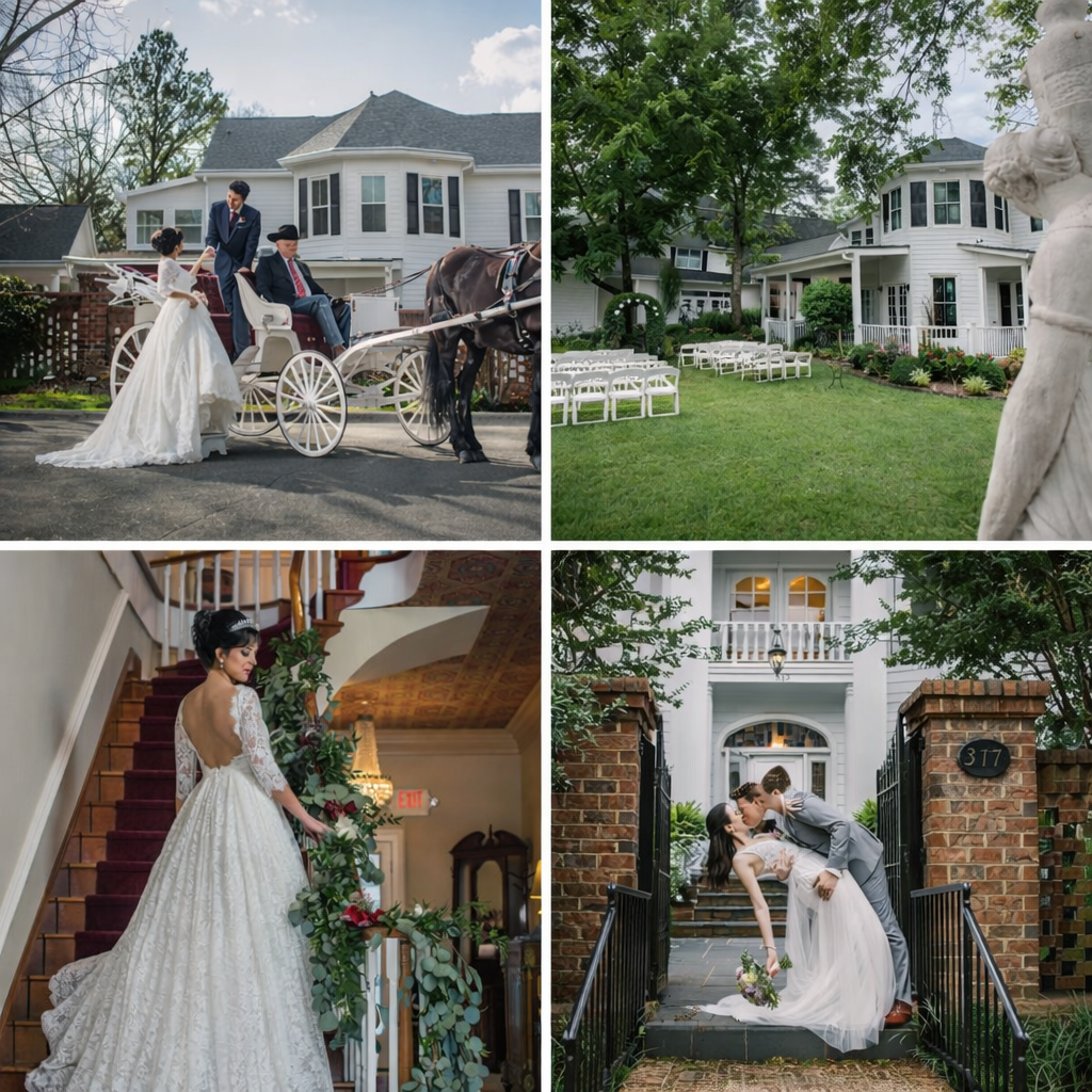 The Carolina Manor House blends history and elegance in Franklinton, NC. Celebrate at this authentic Queen Anne mansion on 10 beautiful acres, a timeless setting for your next special event soon.